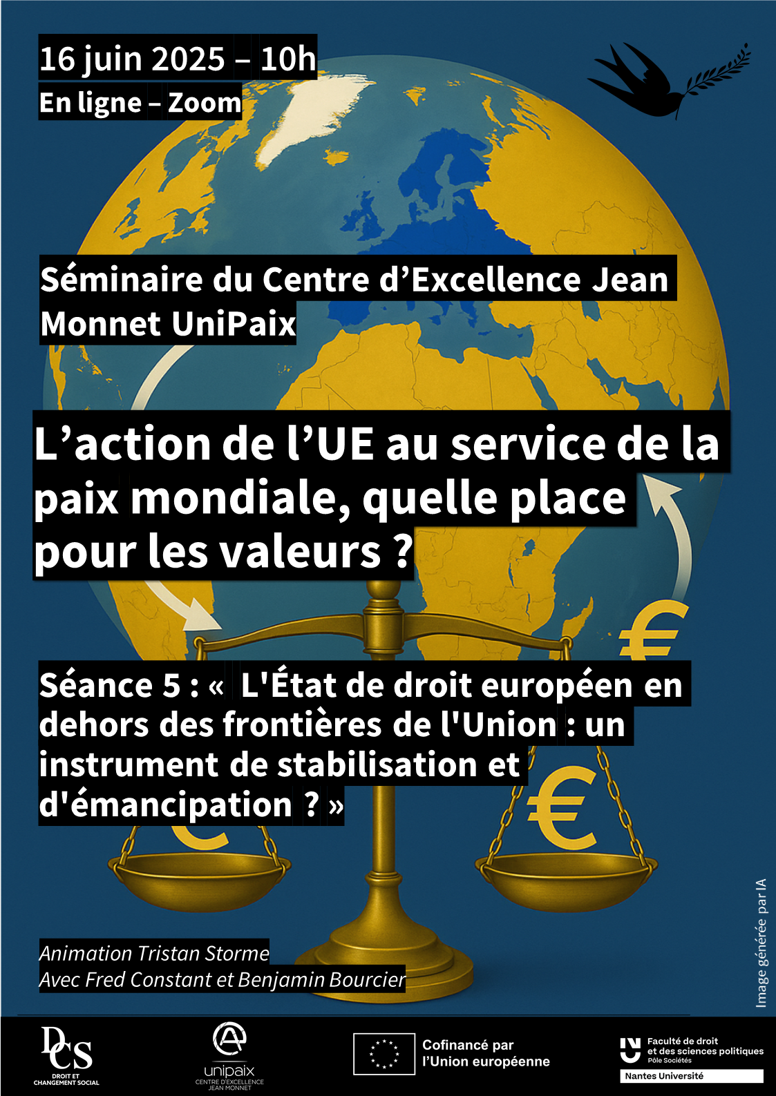 La dernière séance du séminaire annuel 2024-2025 aura lieu le 16 juin prochain à 10h autour de « L’État de droit européen en dehors des frontières de l’Union : un instrument de stabilisation et d’émancipation ? « . Nous accueillerons 2 intervenants :